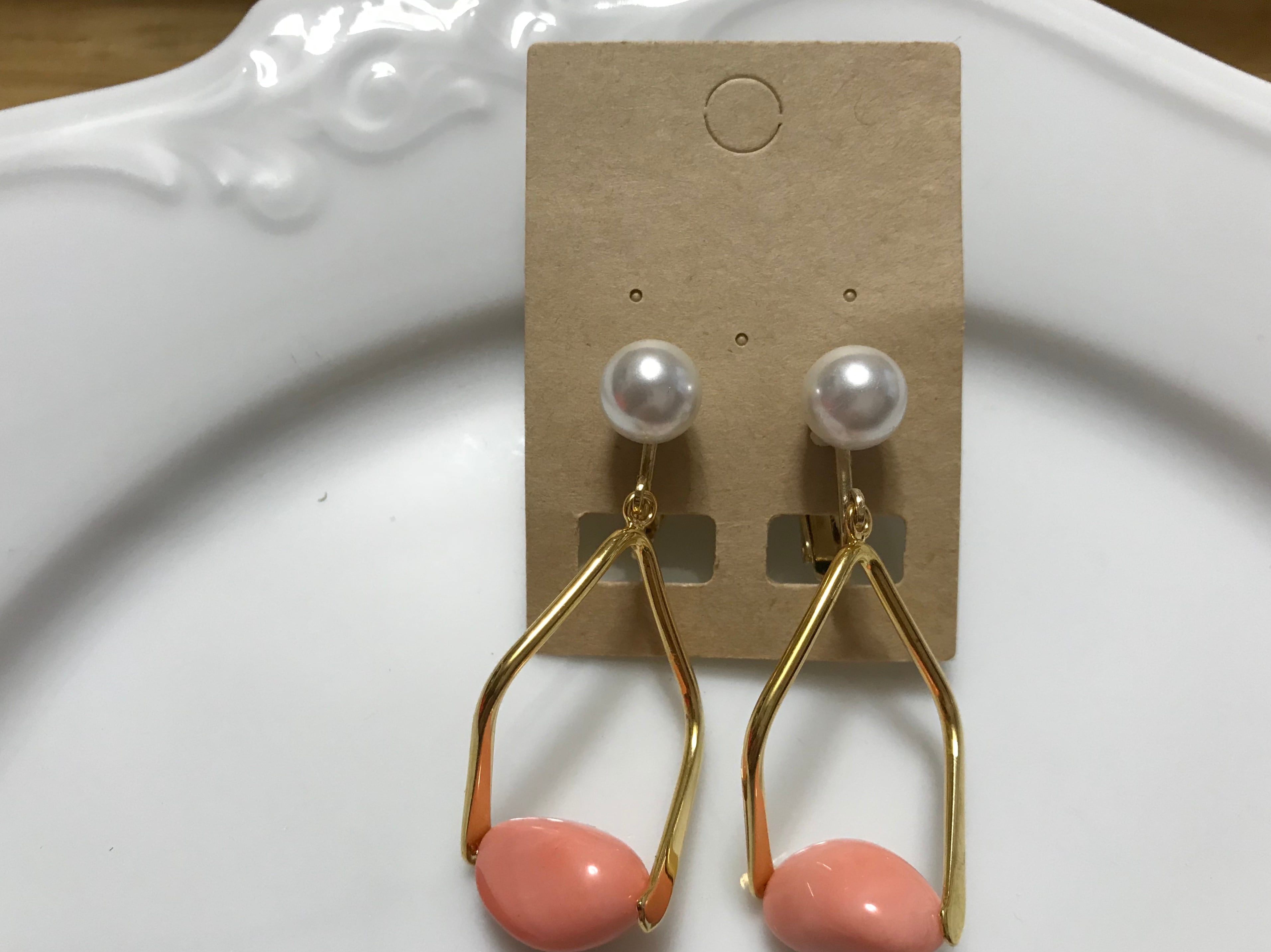 大ぶりのラグジュアリーでエレガントな大人ピアス MIRIYA ACCESSORY SHOPです。こちらはサーモンピンクの大ぶりイヤリングの紹介ページです。大ぶりのサーモンピンクの石が映えるこちらの商品は女性的なコーデにおす すめです。